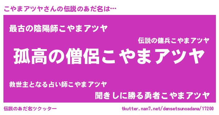 | 男性向けラノベタイトル風あだ名 | 『ダンジョンにこやまアツヤを求めるのは間違っているだろうか』 |