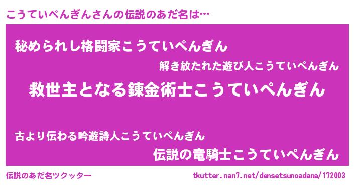 | ヒーロー風カッコイイあだ名 | 『天空の使者こうていぺんぎん』 |