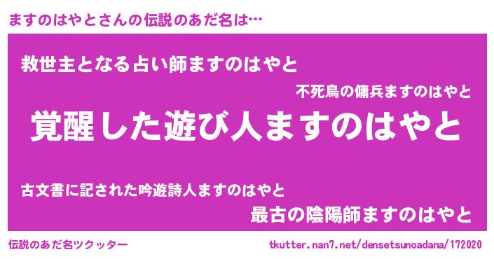 | 意味不明あだ名 | 『住所不定無職ますのはやと(79歳)』 |