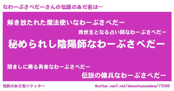 | ファンタジー風あだ名 | 『エターナルナワーブサベダーー』 |