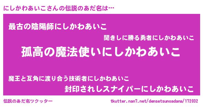 | 肩書あだ名 | 『にしかわあいこ閣下』 |