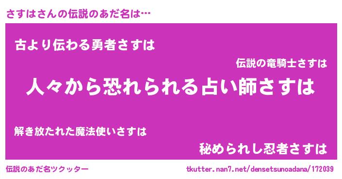 | ヘコむあだ名 | 『さすは(爆)』『豆乳』『さすにー』 |