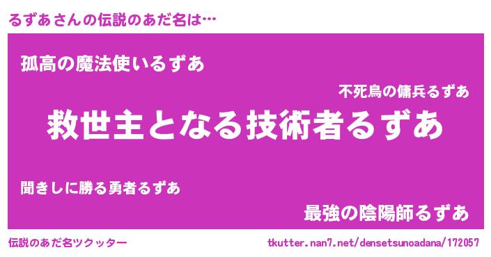 | ヒーロー風カッコイイあだ名 | 『最強戦士ルズア』『友情の使者るずあ』 |