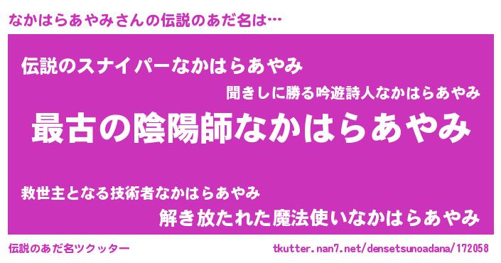 | 意味不明あだ名 | 『なかはらあやみフォーエバー』 |