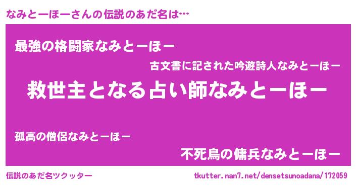 | 意味不明あだ名 | 『ヨモギ科なみとーほー属』 |