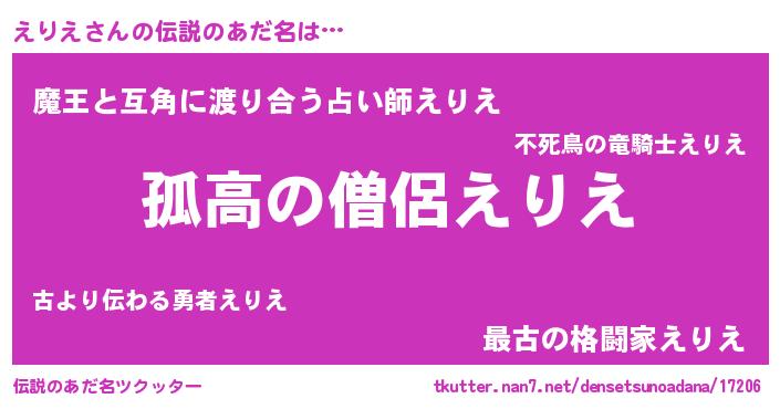 | 意味不明あだ名 | 『住所不定無職えりえ(39歳)』『自称えりえ』 |