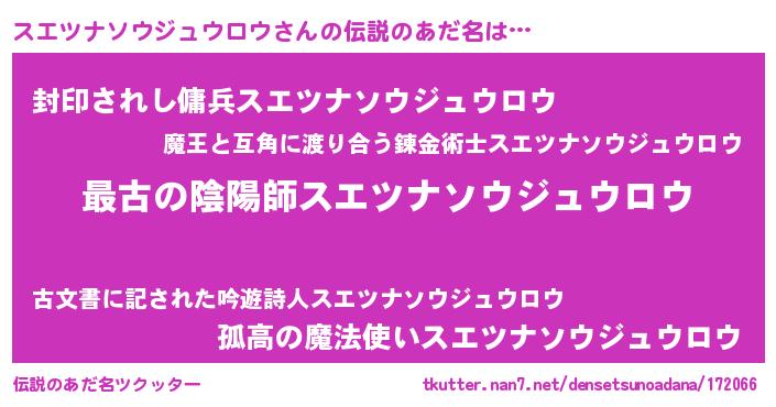 | 欧米人風あだ名 | 『スエツナソウジュウロウクリステル』 |
