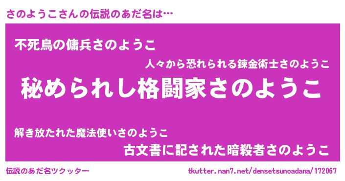 | ヒーロー風カッコイイあだ名 | 『ウルトラさのようこマン』 |