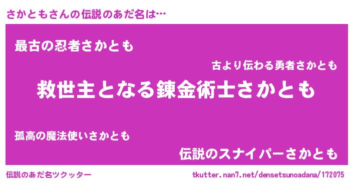| ヒーロー風カッコイイあだ名 | 『慈愛の使者さかとも』『仮面サカダー』 |