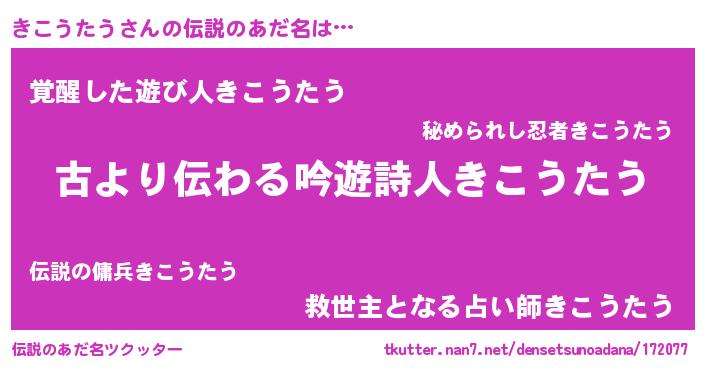 | 意味不明あだ名 | 『永久保存きこうたう』『自称きこうたう』 |