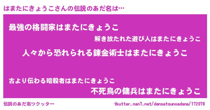 | ヒーロー風カッコイイあだ名 | 『友情の使者はまたにきょうこ』 |