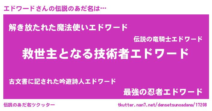 | 男性向けラノベタイトル風あだ名 | 『エドワードに滅ぼされるだけの簡単なお仕事です』 |