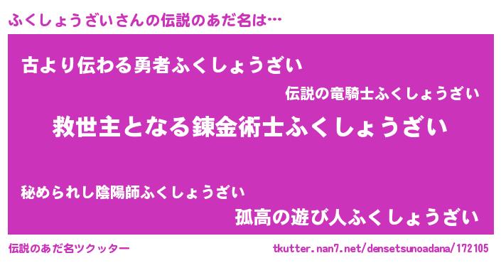 | ヘコむあだ名 | 『ふくしょうざい(遠い目)』『ふくぷりん』 |
