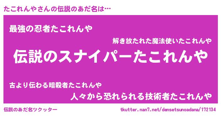 | 意味不明あだ名 | 『ペロリンたこれんや』『自称たこれんや』 |