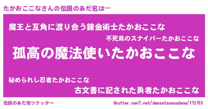 | 女子向けラノベタイトル風あだ名 | 『たかおここなは平凡を望む』 |
