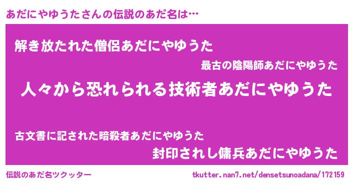 | 胡散臭い通販商品みたいなあだ名 | 『100人中100人が認めたマグネット磁石…その名も「あだにやゆうた」』 |