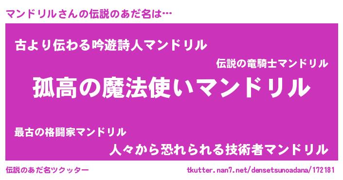 | 胡散臭い通販商品みたいなあだ名 | 『信頼と実績のサプリメント…その名も「マンドリル」』 |