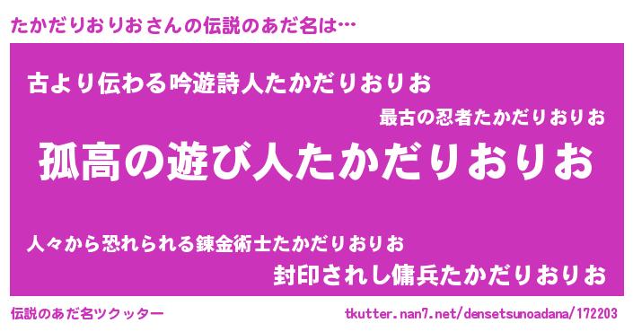 | 欧米人風あだ名 | 『ウサインたかだりおりお』 |