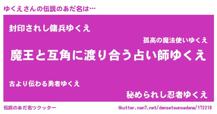 | ヒーロー風カッコイイあだ名 | 『サイバー戦士ユクエ』『スーパーユクエ』 |