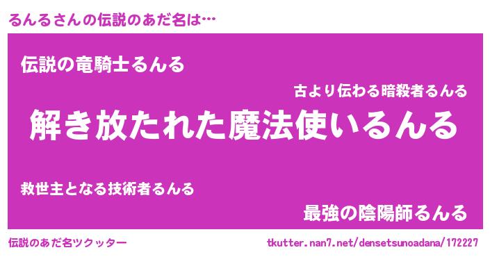 | 意味不明あだ名 | 『住所不定無職るんる(11歳)』『自称るんる』 |