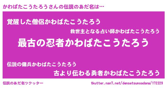 | 男性向けラノベタイトル風あだ名 | 『やはりかわばたこうたろうの青春ラブコメはまちがっている 』 |