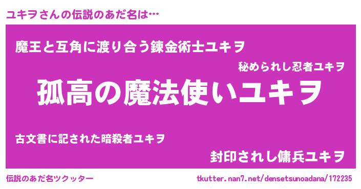 | ポケモン風あだ名 | 『ユキキング』『ヒユキヲ』 |