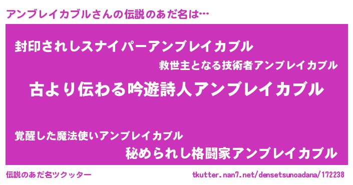 | 意味不明あだ名 | 『自称アンブレイカブル』 |