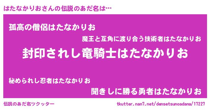 | 男性向けラノベタイトル風あだ名 | 『ハタナカリオアートオンライン』 |