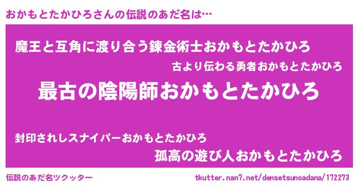 | 意味不明あだ名 | 『おかもとたかひろフォーエバー』 |