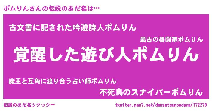 | 意味不明あだ名 | 『自称ポムりん』『永久保存ポムりん』 |