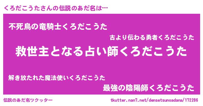 | ヒーロー風カッコイイあだ名 | 『慈愛の使者くろだこうた』 |