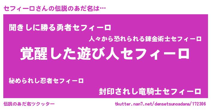 | ヒーロー風カッコイイあだ名 | 『天弓騎士セフ』『ネオセフィーロ』 |