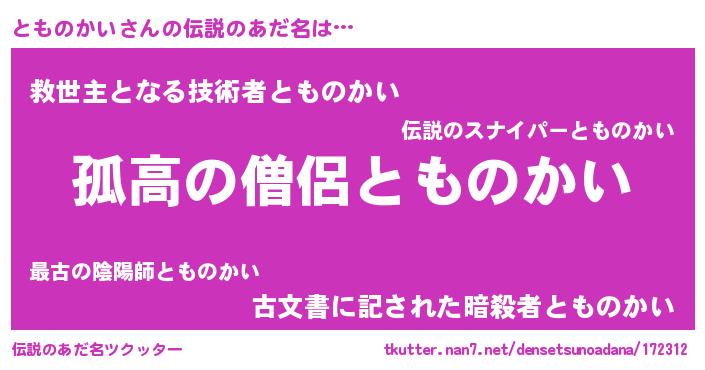 | ヒーロー風カッコイイあだ名 | 『黄金騎士トモ』『慈愛の使者とものかい』 |