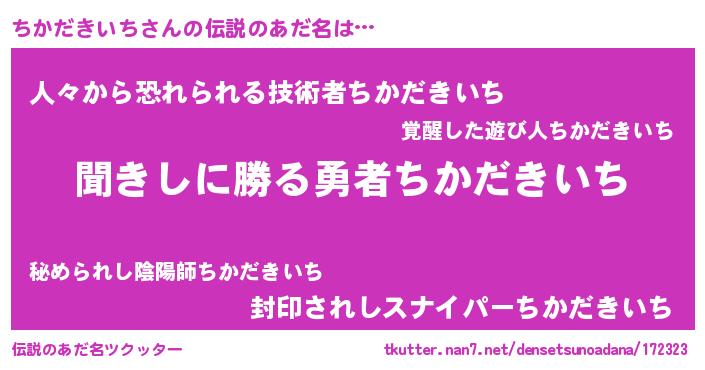 | ヒーロー風カッコイイあだ名 | 『ネオチカダキイチ』『仮面チカダー』 |