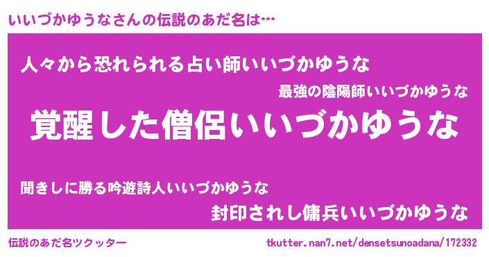 | 女子向けラノベタイトル風あだ名 | 『いいづかゆうな様がみてる』 |