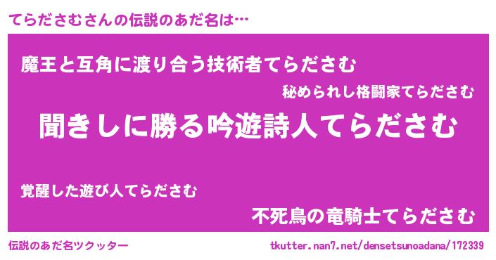 | 意味不明あだ名 | 『自称てらださむ』『永久保存てらださむ』 |