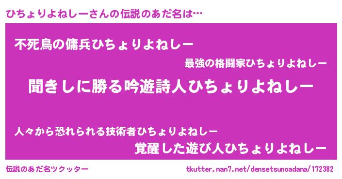 | 女子向けラノベタイトル風あだ名 | 『異世界で失敗しない100のひちょりよねしー』 |