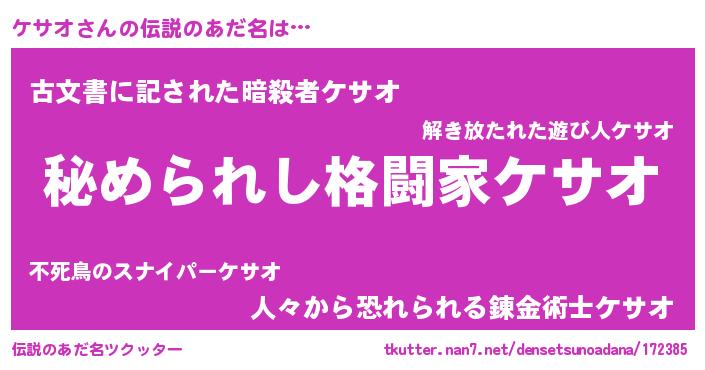 | ファンタジー風あだ名 | 『エターナルケサオー』『ケサディッシュ』 |