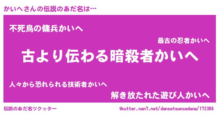 | 意味不明あだ名 | 『住所不定無職かいへ(43歳)』 |
