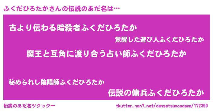 | ヘコむあだ名 | 『ふくだひろたか(爆)』『ふくにゅー』 |