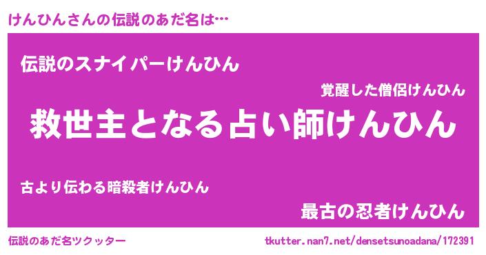 | ヘコむあだ名 | 『けんにゅー』『つくし』『けんっ子』 |