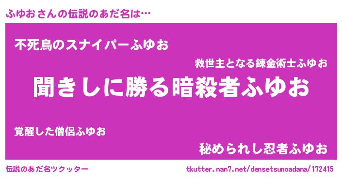 | ファンタジー風あだ名 | 『ヴァルフユーナ』『フユディッシュ』 |