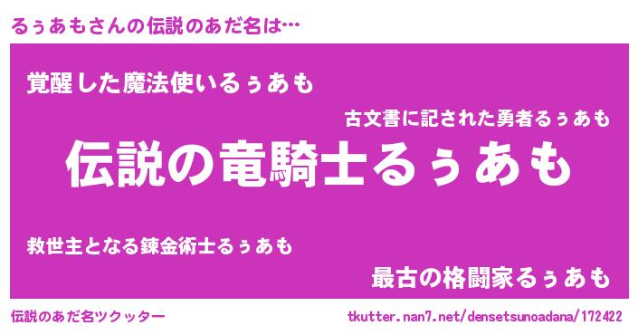 | ヒーロー風カッコイイあだ名 | 『スーパールゥアモ』『暗黒騎士ルゥ』 |