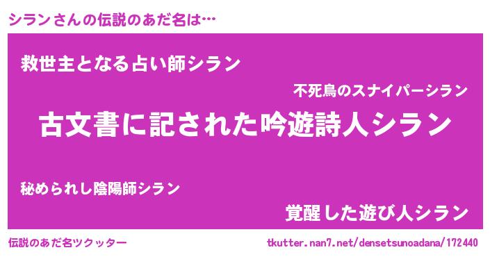 | 男性向けラノベタイトル風あだ名 | 『Re:シランから始める異世界生活』 |