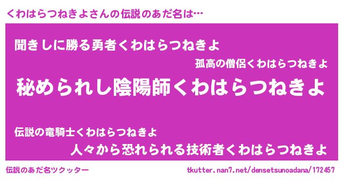 | 意味不明あだ名 | 『くわはらつねきよフォーエバー』 |