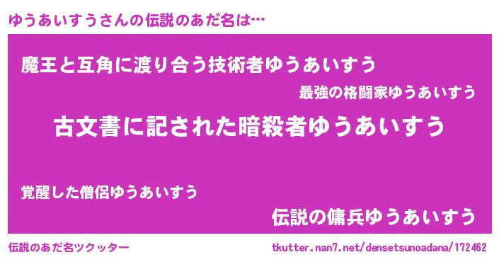 | 意味不明あだ名 | 『住所不定無職ゆうあいすう(14歳)』 |