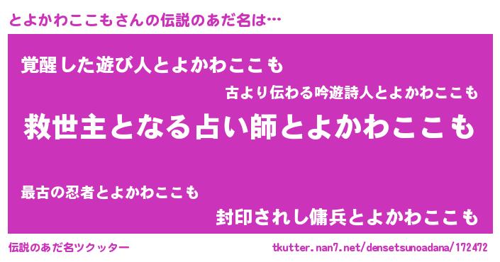 | 意味不明あだ名 | 『住所不定無職とよかわここも(47歳)』 |