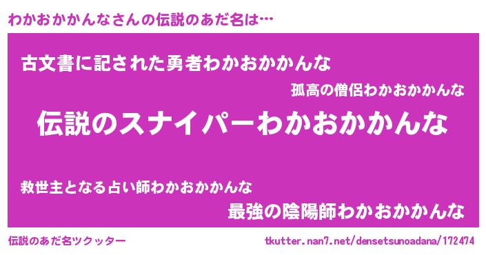 | 胡散臭い通販商品みたいなあだ名 | 『必ず成功する霊験あらたかなお札…その名も「わかおかかんな」』 |