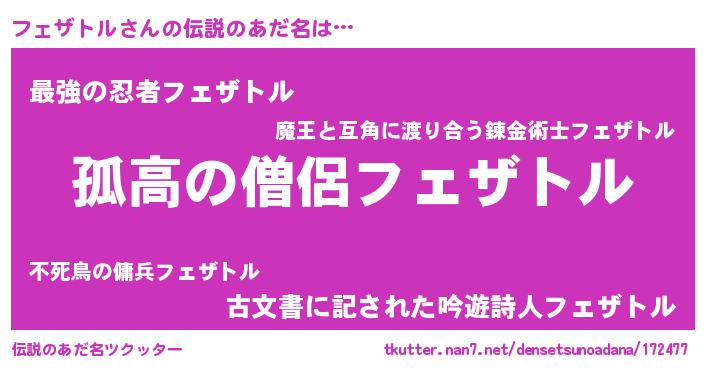 | 意味不明あだ名 | 『とにかく怪しいフェザトル』 |