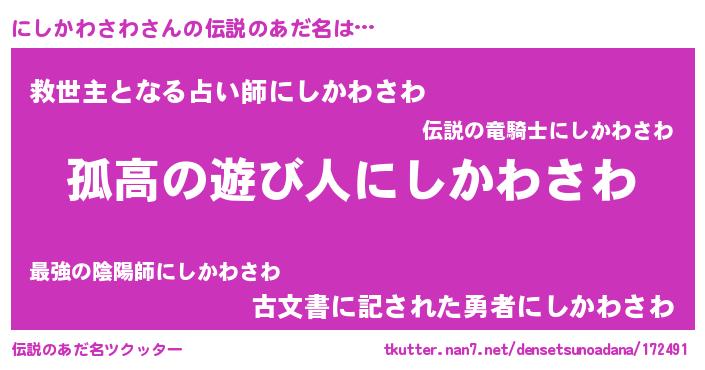 | 意味不明あだ名 | 『とにかく怪しいにしかわさわ』 |